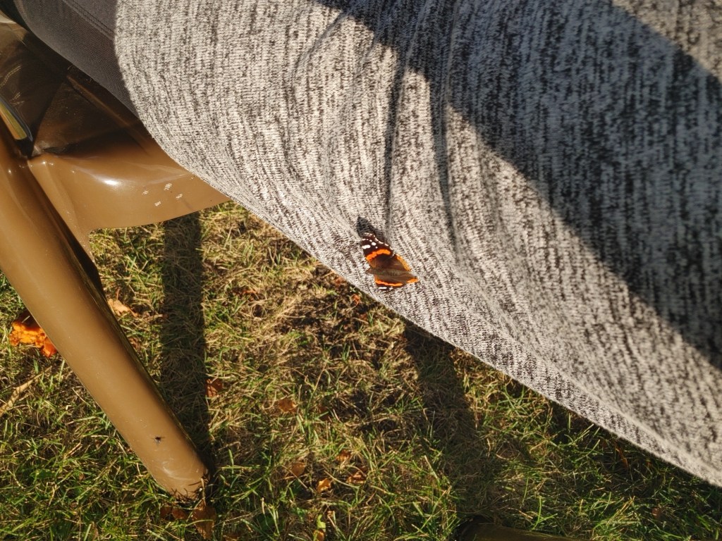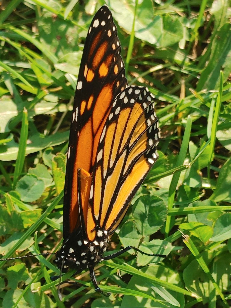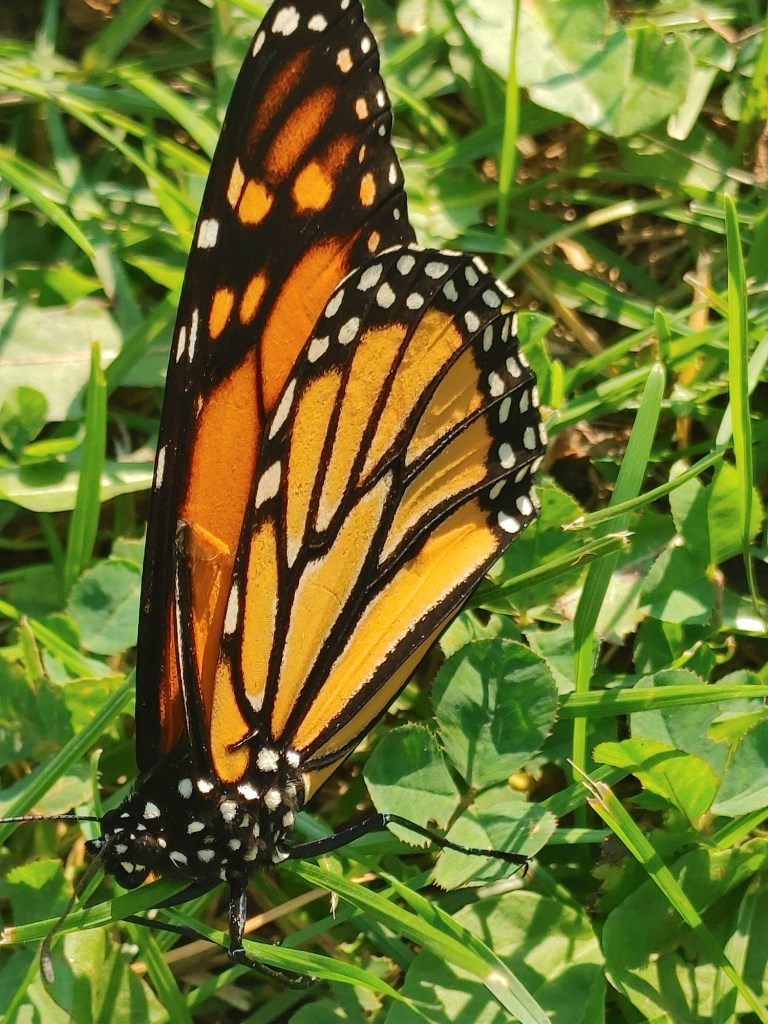 When I noticed a large majestic Monarch Butterfly, fluttering around chaotically.